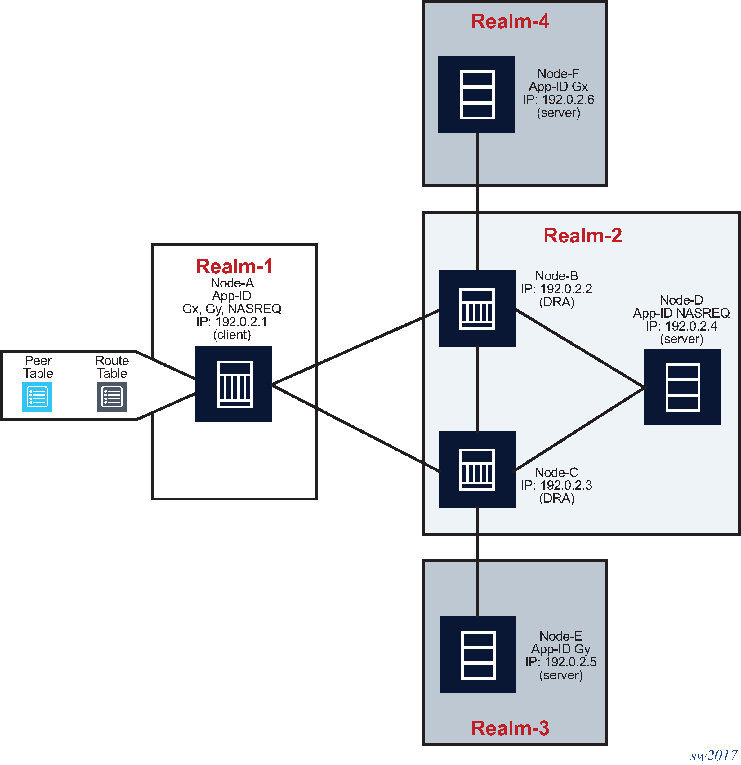 The Diameter base protocol is used to provide reliable and secure communication for Diameter applications between and across the Diameter peers (diameter clients, agents, or servers). Its routing capabilities to transport traffic across Diameter nodes rely on Diameter identities that are composed of host and realm names. Diameter applications supported in SR OS are NASREQ, Gx, and Gy.