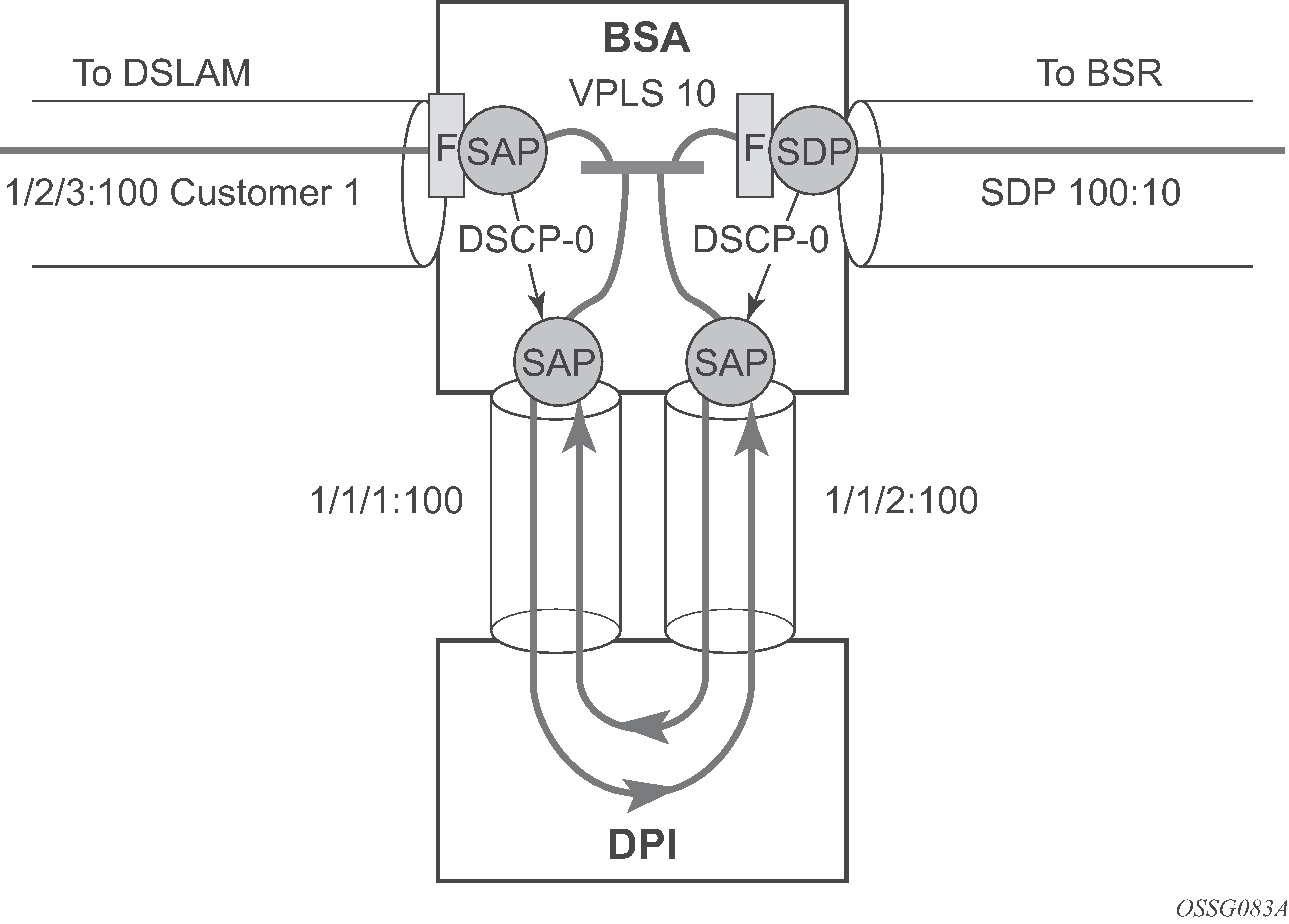 This section describes the 7450 ESS or 7750 SR acting as a Broadband Subscriber Aggregator (BSA) with Layer 2 aggregation toward a Broadband Subscriber Router (BSR).