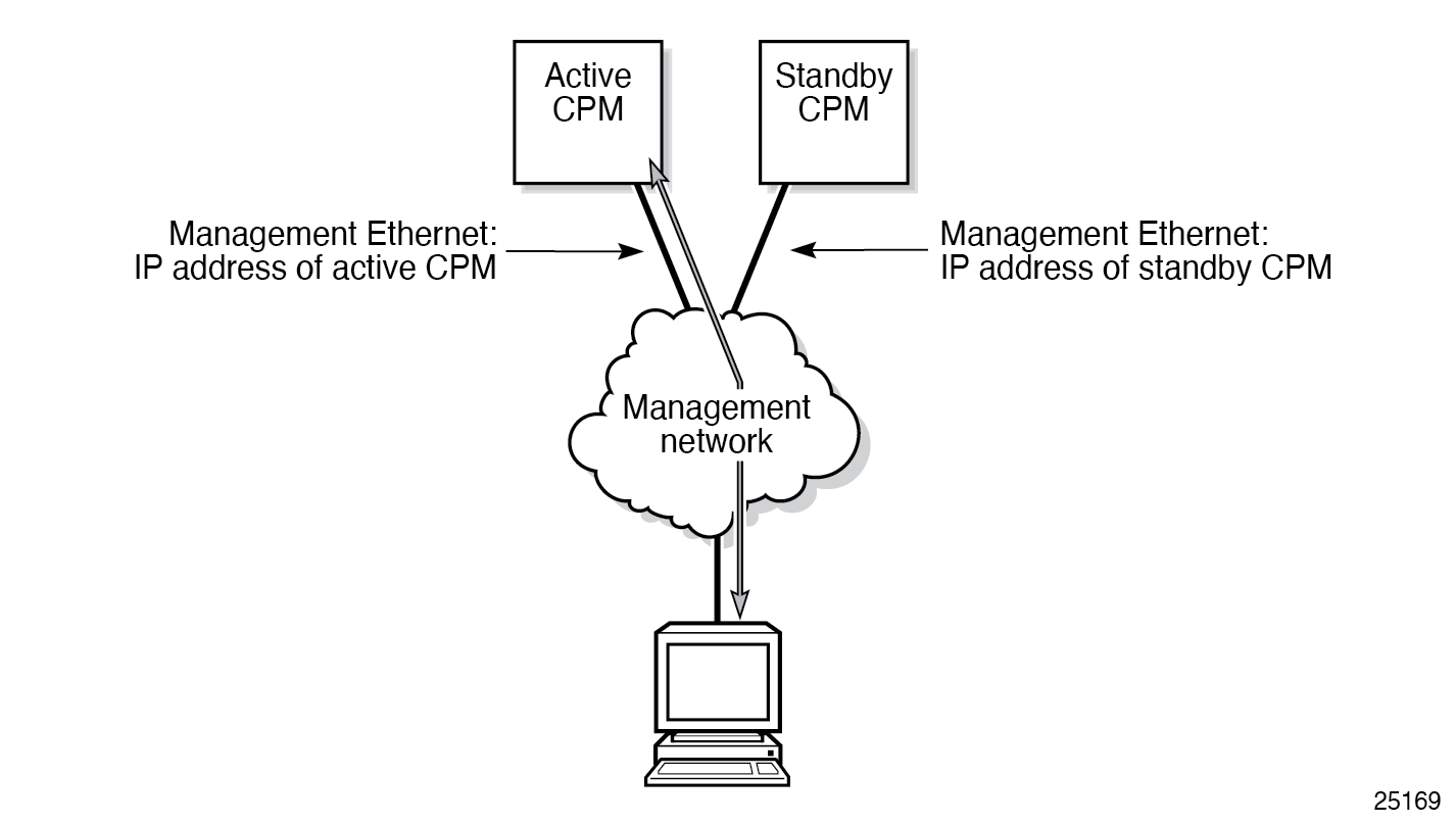 SR OS provides a resilient out-of-band (OOB) management Ethernet redundancy mode for system management.
