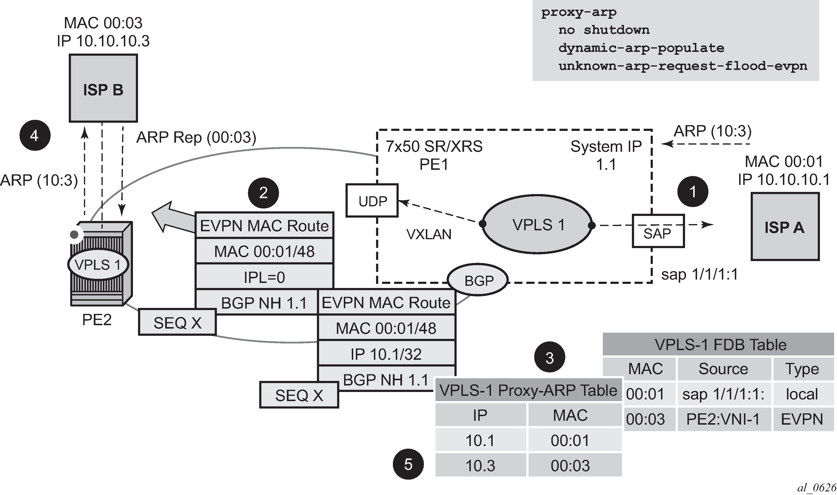 Note: All remote MACs are learned by the EVPN BGP and associated with a remote VTEP address and VNI.