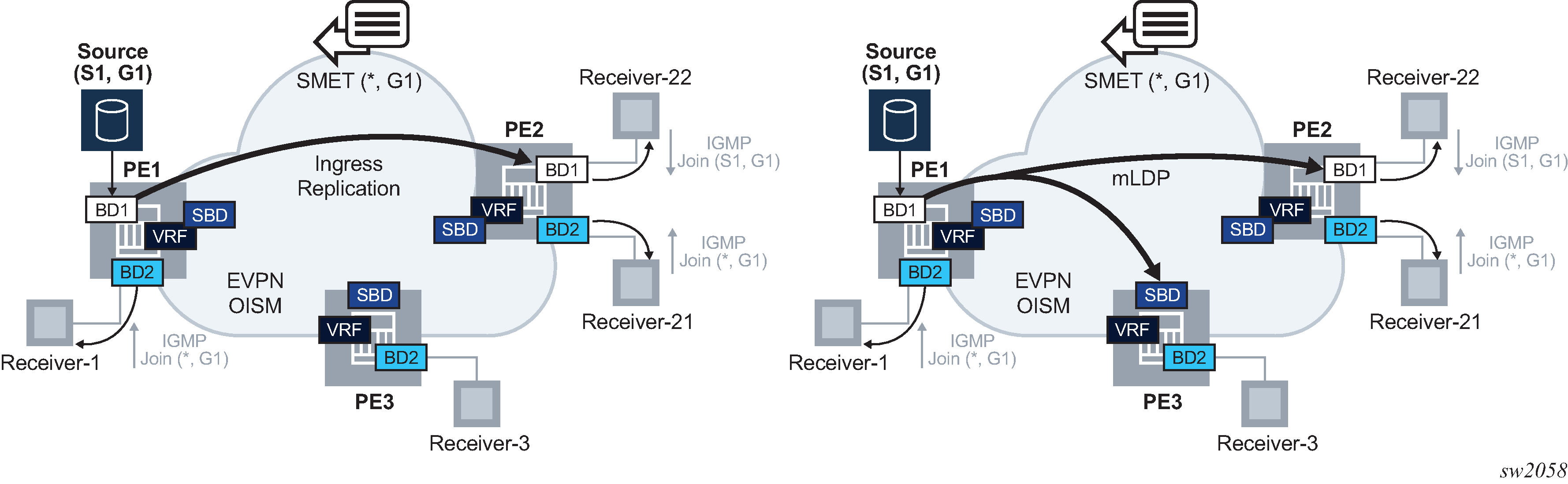 As defined in RFC 7432, EVPN-MPLS is an L2VPN technology that can fill the gaps in VPLS for E-LAN services. Service providers that offer E-LAN services request EVPN for its multihoming capabilities and to leverage the optimization EVPN provides.