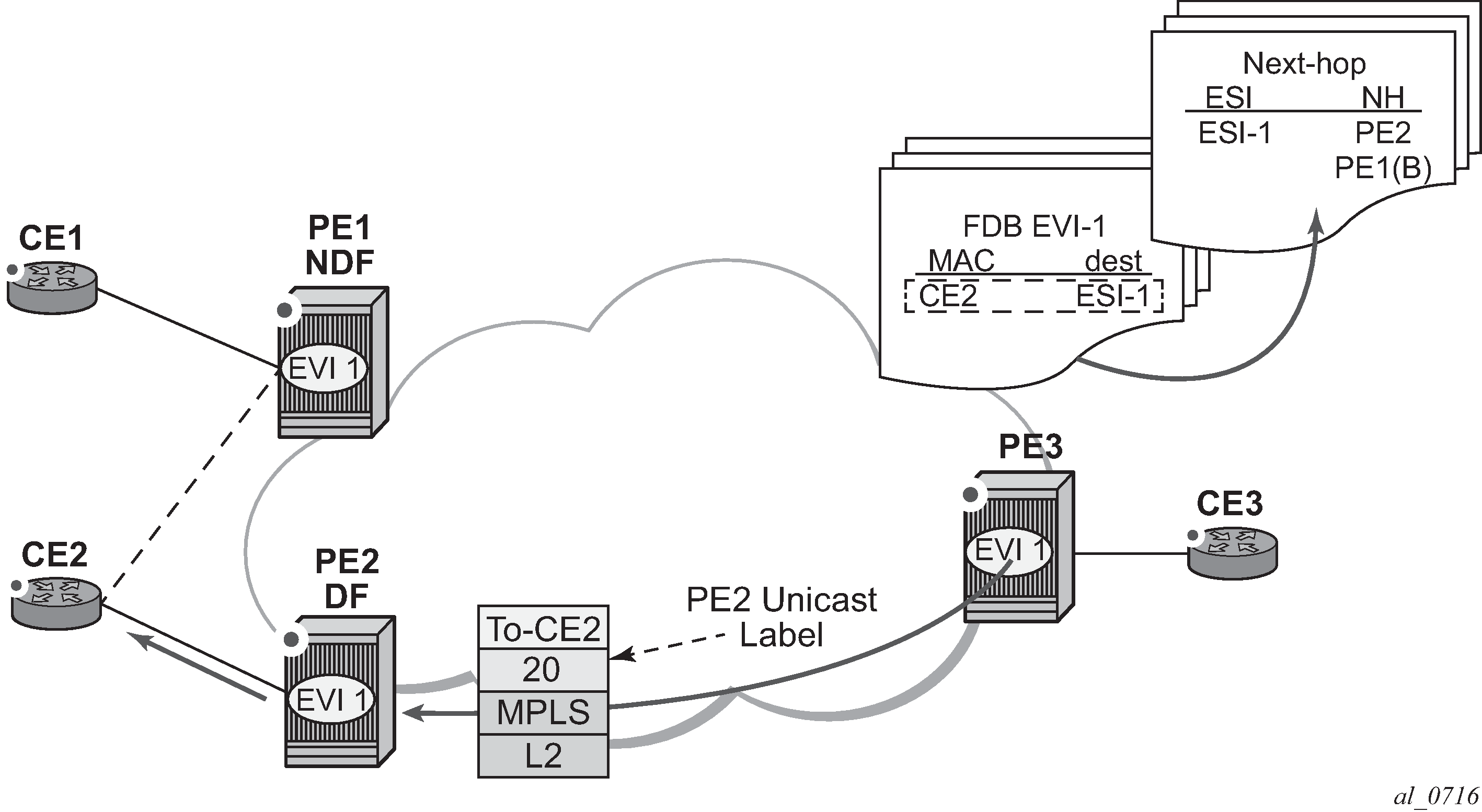 The EVPN-MPLS functionality is standardized in RFC 7432.