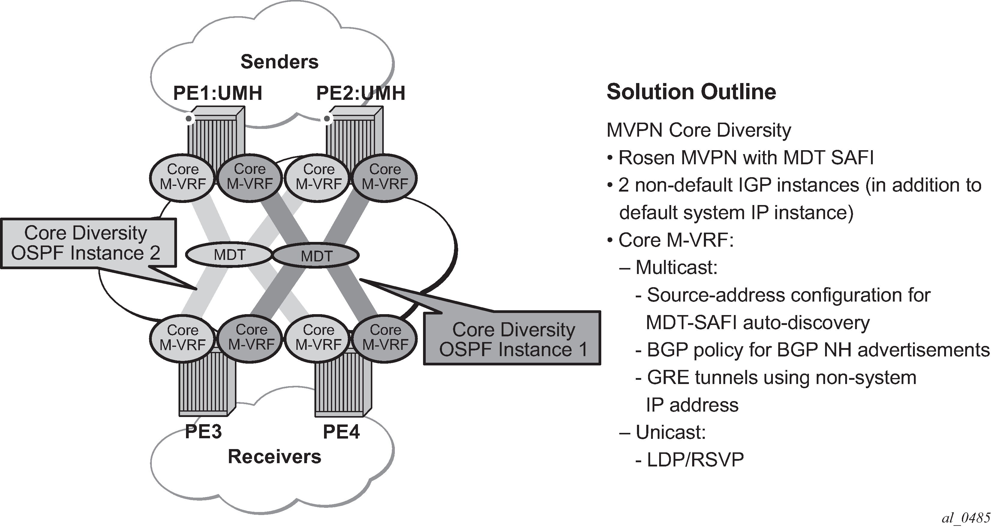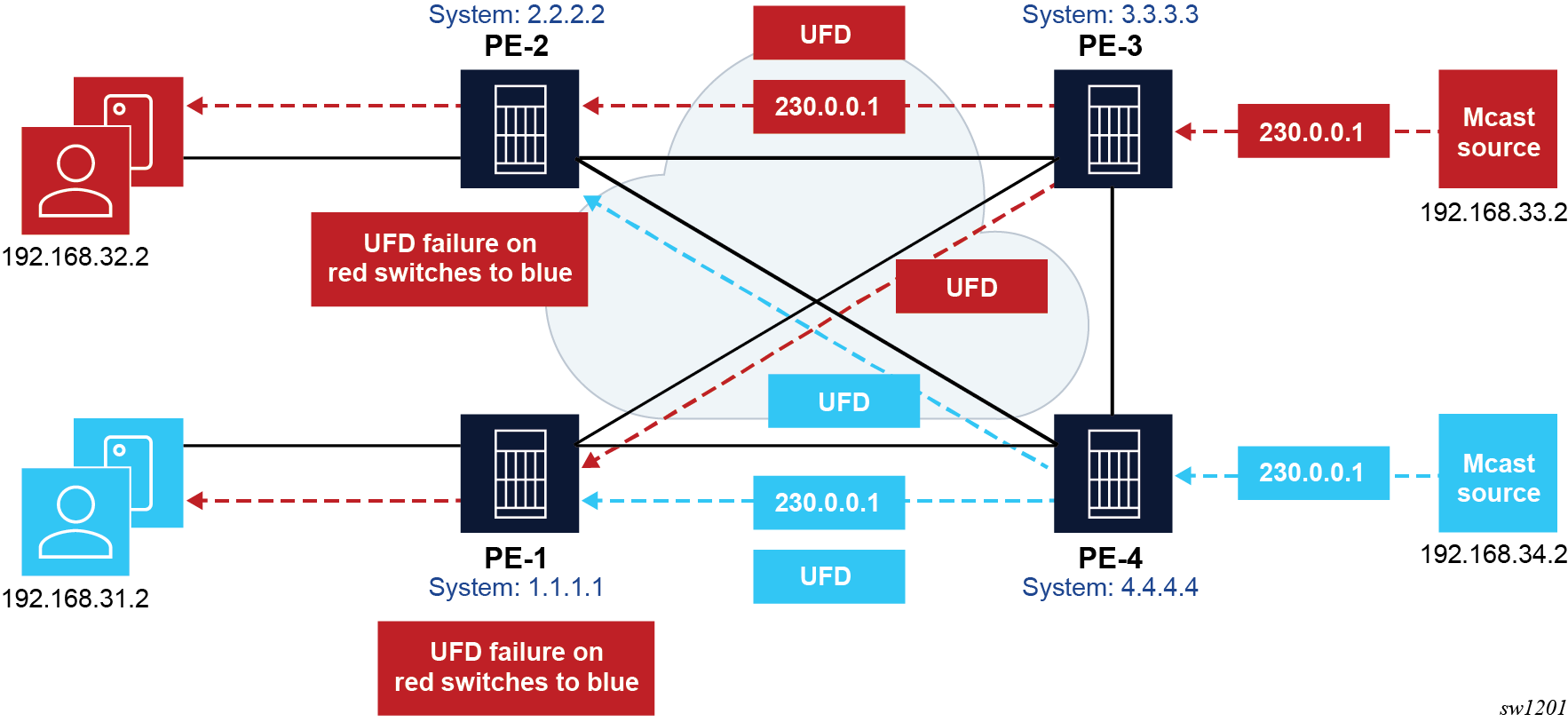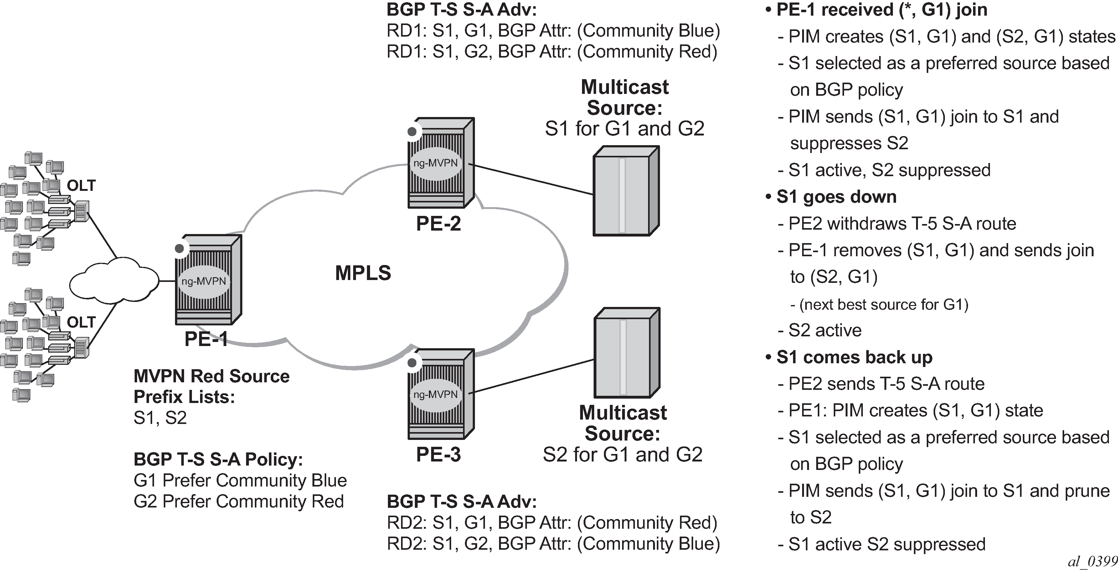 These cause an overload state in the IGP to trigger the traffic reroute by setting the overload bit in IS-IS or setting the metric to maximum in OSPF. When PIM uses IS-IS or OSPF to find out the upstream router, a next-hop change in the IS-IS or OSPF causes PIM to join the new path and prune the old path, which effectively also reroutes the multicast traffic downstream as well as the unicast traffic.