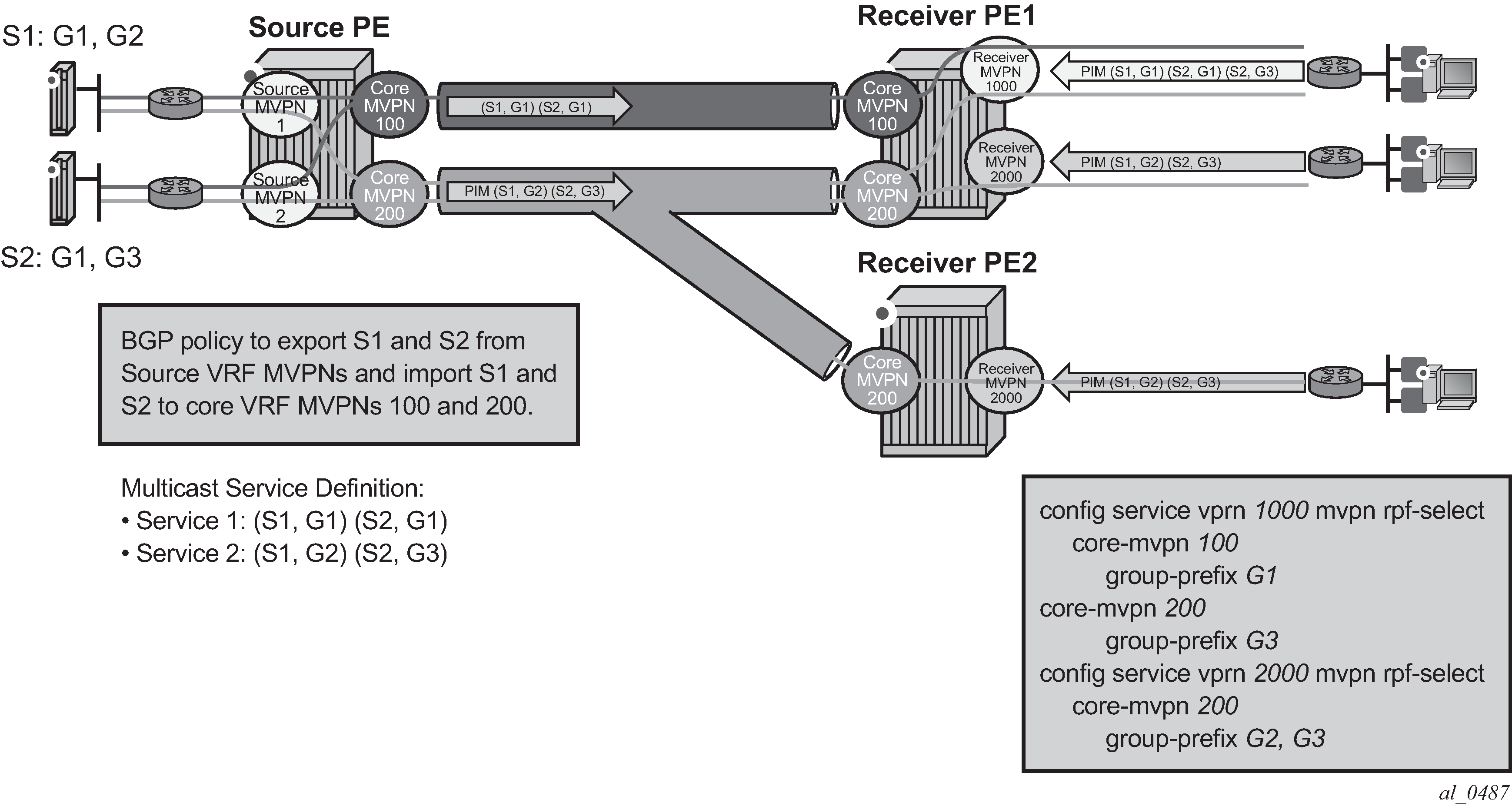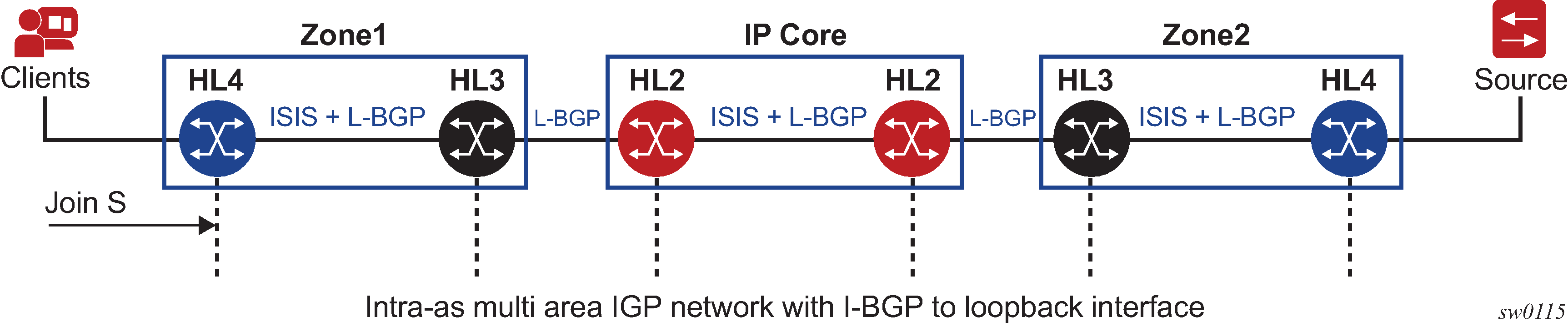The use of Route Reflectors is supported in the service provider core. Multiple sets of route reflectors can be used for different types of BGP routes, including IPv4 and VPN-IPv4 as well as multicast and IPv6 (multicast and IPv6 apply to the 7750 SR only).