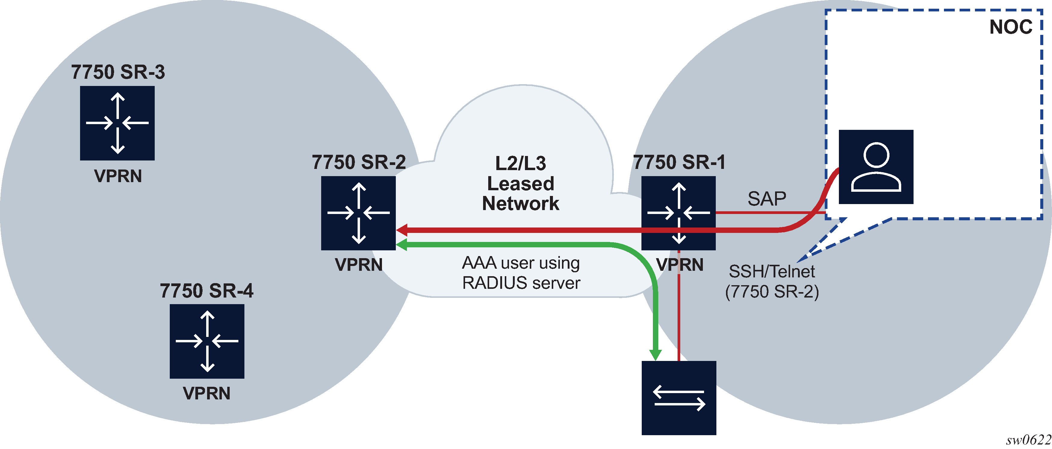 A SAP is a combination of a port and encapsulation command options that identifies the service access point on the interface and within the SR. Each SAP must be unique within a router. A SAP cannot be defined if the interface loopback command is enabled.