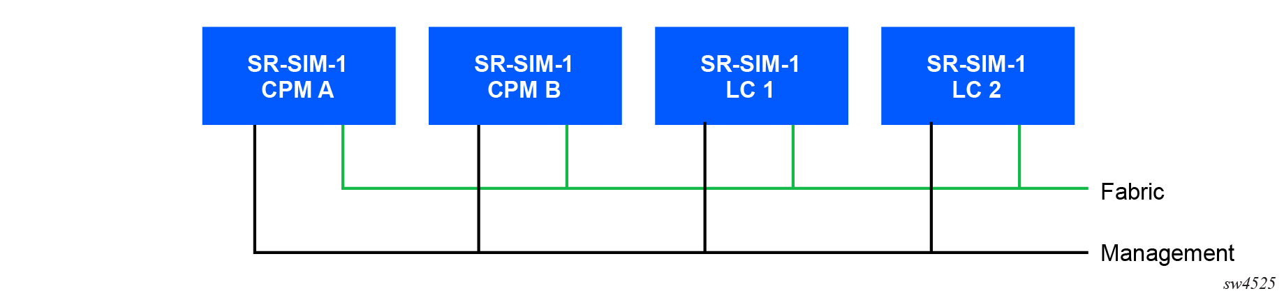 The MTU of interfaces associated with SR-SIM internal fabric interfaces must be set to 9000 bytes. Packets sent over the fabric by each IOM/XCM or CPM are Ethernet encapsulated (without 802.1Q VLAN tags), and frames with a multicast or broadcast destination MAC address must be delivered to all containers of the SR-SIM instance.