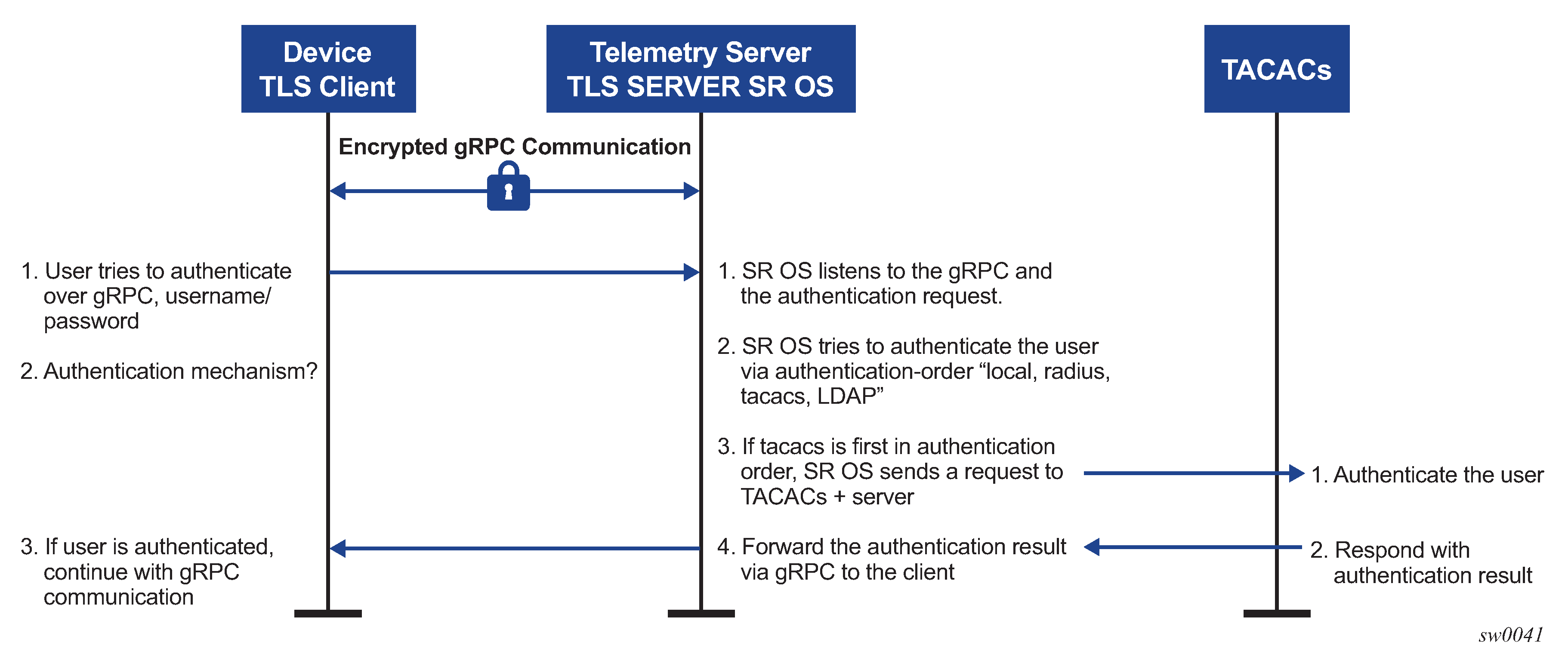 TACACS+ can be used for authentication, authorization, and accounting in the Base routing instance or a VPRN.