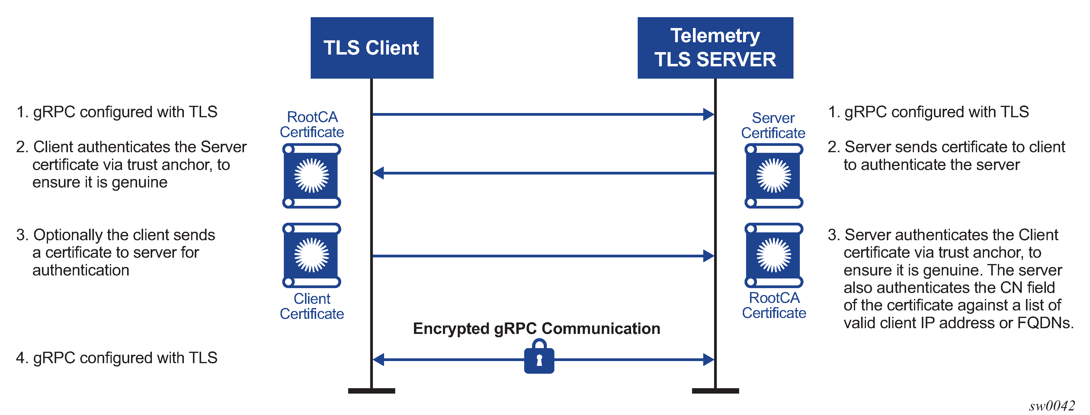- Ensure that TLS certificates and clients are also configured; see TLS for information about TLS configuration in the SR OS.