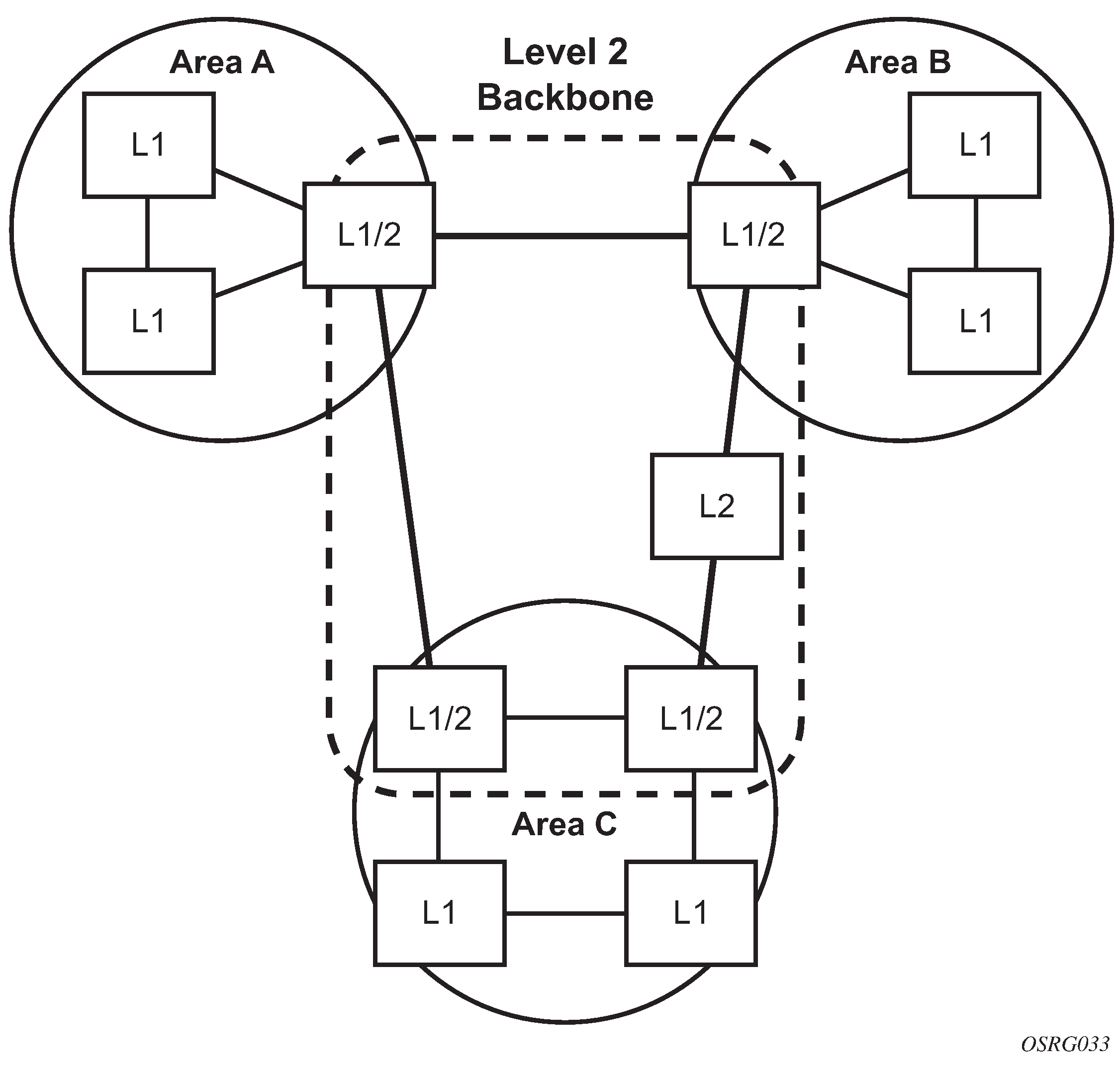 Routing is performed based on the area address. They route toward other areas, disregarding those internal structures. A Level 2 intermediate system can also be configured as a Level 1 intermediate system in the same area.