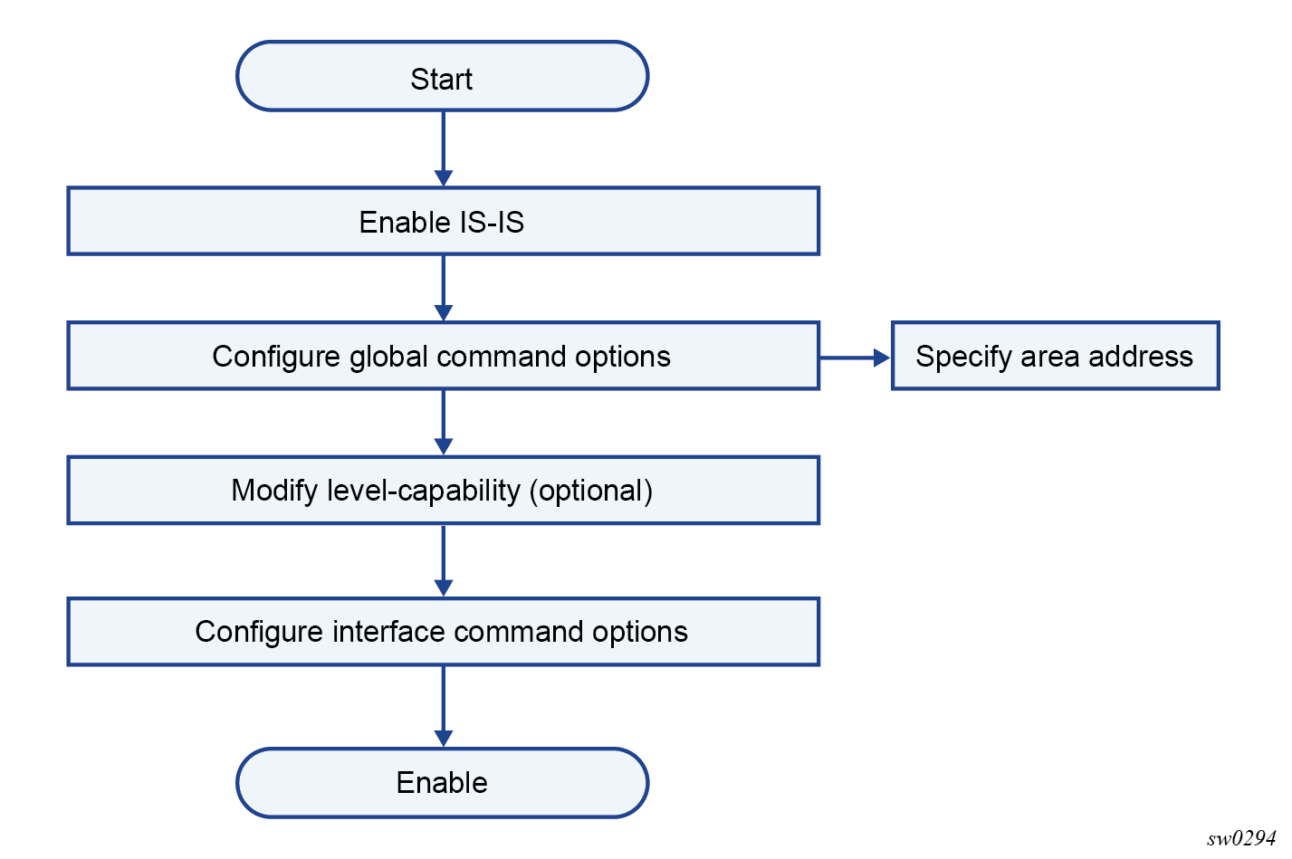 MD-CLI[ex:/configure router "Base" isis 0] A:admin@node-2# info authentication-key "auth-key= hash2" authentication-type password ... area-address [49.0180.0001 49.0180.0002 49.0180.0003] authentication-check false export-policy "leak" ...classic CLIA:node-2>config>router>isis# info ---------------------------------------------- area-id 49.0180.0001 area-id 49.0180.0002 area-id 49.0180.0003 authentication-key "//auth-key" hash authentication-type password no authentication-check export "leak" ... ---------------------------------------------- - MD-CLI