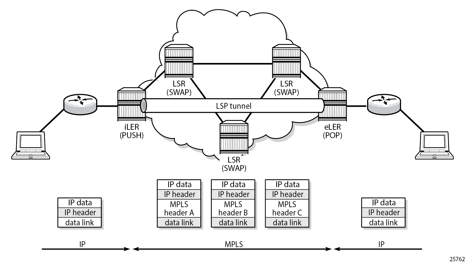 - The MPLS router at the head-end of an LSP is called the ingress Label Edge Router (ILER)