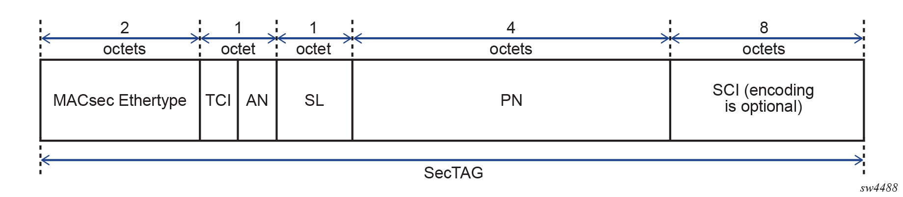 The SecTAG field, which is identified by the MACsec EtherType, conveys the following information: