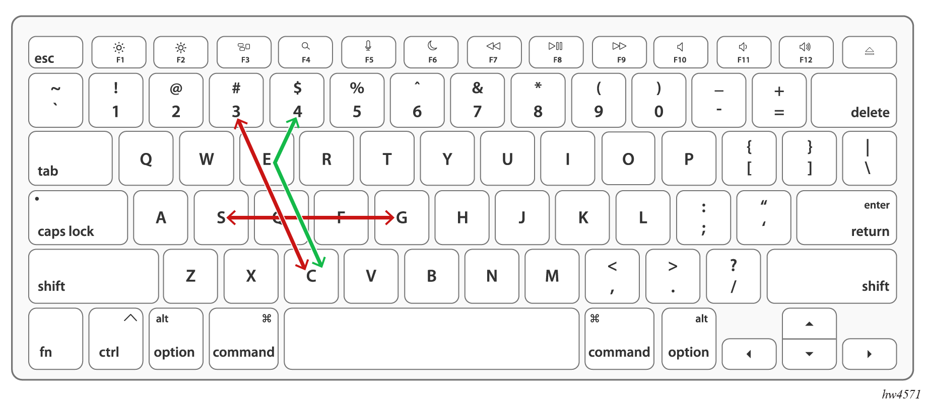 Additionally, SR Linux restricts the use of sequential characters on a keyboard. You can configure a limit on the number of allowed numeric, uppercase, or lowercase characters that correspond to consecutive keys on U.S. English or Korean keyboard layout. These sequences are evaluated in all directions: left to right, right to left, down to up-right or up-left, or up to down-right or down-left.
