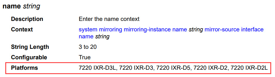 A description of each parameter is also available from the online CLI help function. See the SR Linux System Management Guide for information on using the CLI help.
