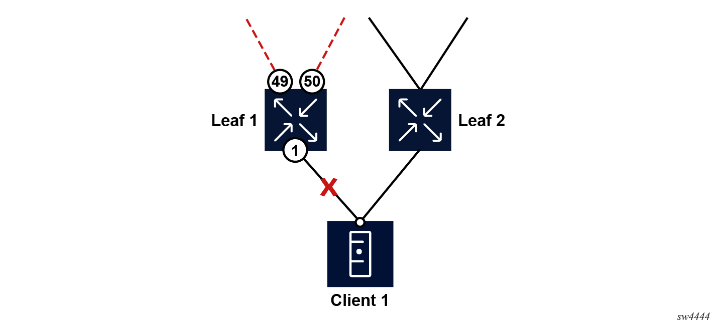 The key to preventing traffic from being black-holed is to not allow it to be forwarded to a leaf that has no active uplinks; for example, by disabling access links as soon as uplinks become operationally disabled.