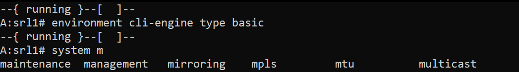 By default, the data model used in the CLI is SR Linux (srl). To set the default data model to a different one, use the environment yang-models command.