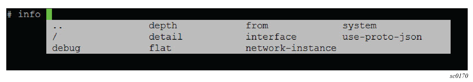 In the SR Linux CLI, you can enter an asterisk (*) to serve as a wildcard character in commands. You can use wildcards to represent any predefined values for a parameter. Note the following considerations when you use wildcards: