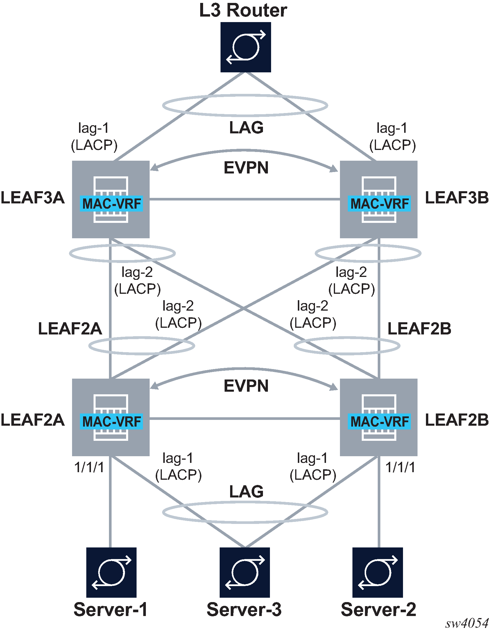 // the mac-vrf uses lag sub-interfaces for the connectivity to rest of