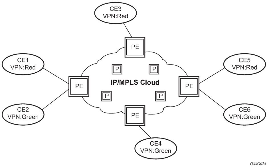 Each IP-VPN consists of a set of customer end points connected to one or more PE routers. Each associated PE router maintains a separate IP forwarding table for each IP-VPN instance. Additionally, the PE routers exchange the routing information configured or learned from all customer sites via MP-BGP peering. Each route exchanged via the MP-BGP protocol includes a Route Distinguisher (RD), which identifies the IP-VPN association and handles any potential IP address overlap.