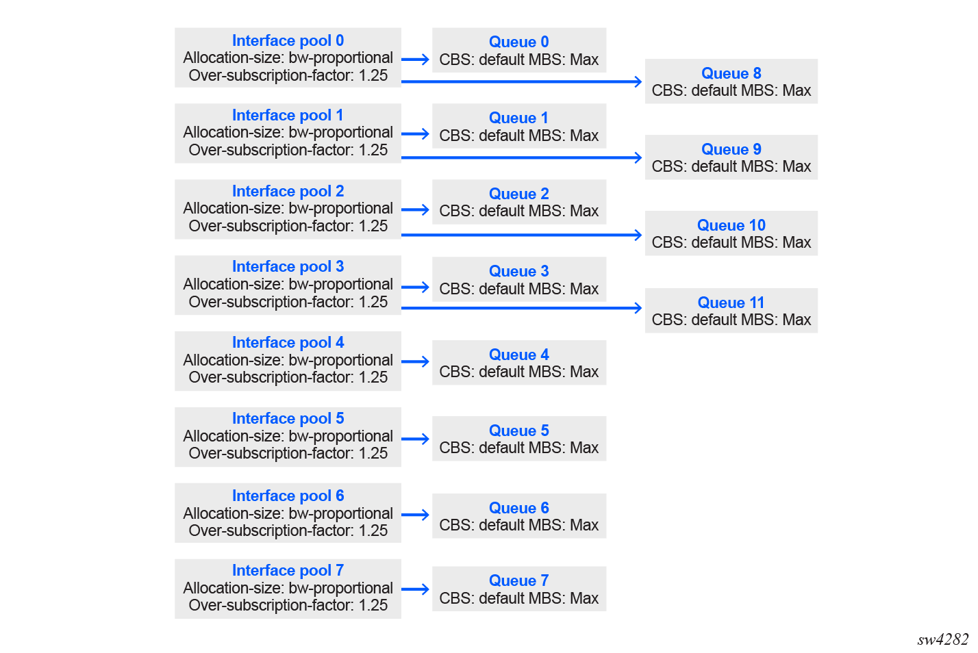 Individual queues must still be mapped to corresponding interface pools using buffer allocation profiles, which are then assigned to interfaces and subinterfaces.